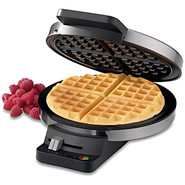 SUPERIOR FUNCTION: The round classic waffle maker is professional quality for home use, Bakes 1 large traditional-style belgian waffle at a time with four quarters and extra-deep waffle pockets.
